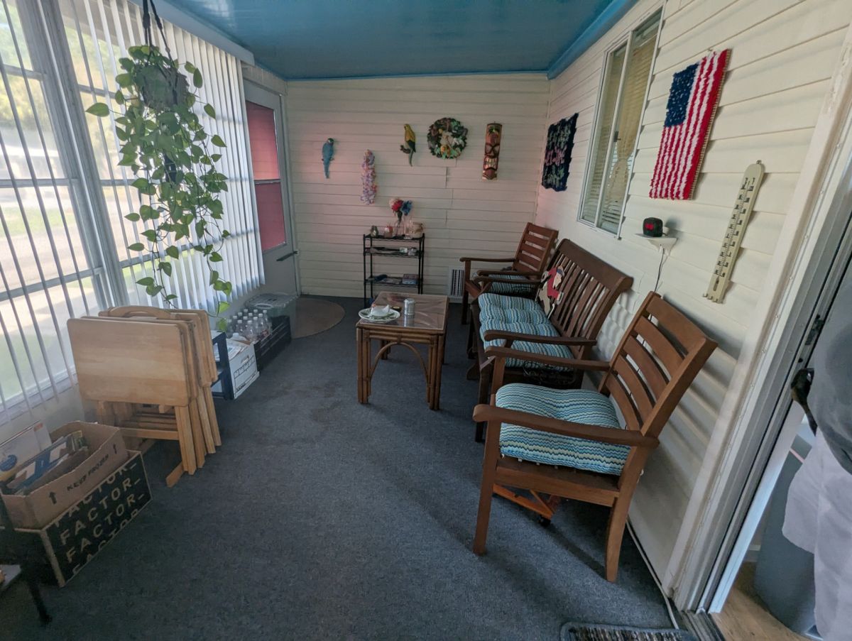 Located in an Active 55+ community! This is a must see cozy 1,092 sq. ft. home that has many many updates starting with a new roof in May, 2023 - Home A/C is 2019 and has duct work going into the lanai so cooling is done from the home air conditioner. Black appliances. New built-in microwave and stove in 2019. New water heater. House has been replumbed throughout. Furniture is negotiable. Most walls finished tape and texture. Living room and bedrooms have carpeting and kitchen has laminated flooring. Single wide driveway with separate entryway to shed - ample storage for a golf cart. Be sure you put this one on your list. Don't miss out on this opportunity. Someone is going to be calling it home.